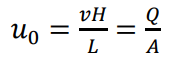 式3-3中流量与沉降区平面面积的比值通常称之为表面负荷率,也称过滤率,用符号q0表示,它与u0在数值上是相同的,但单位不同,q0单位为m³/(s·㎡),表示沉降区每平方米过滤面积承担的流量负荷;后者为速度单位m/s。