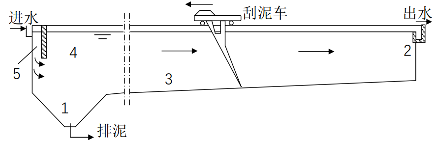 按功能区分,沉淀池可分为流入区、流出区、沉降区、缓冲区、污泥区五个部分。各个部分功能如下: