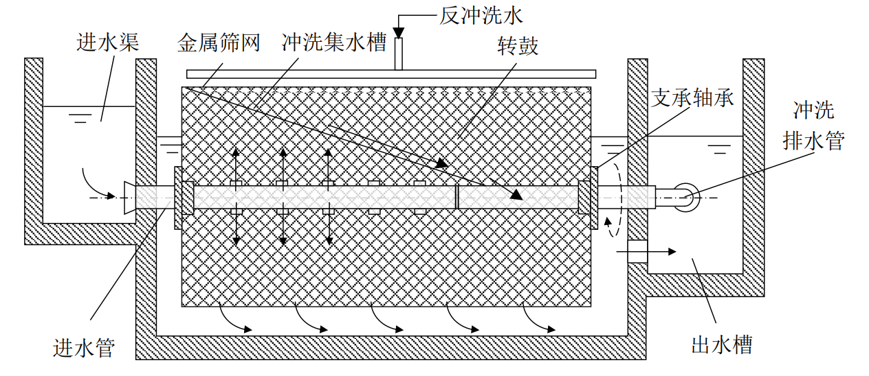 微滤机的水头损失一般小于0.3~0.46m。反冲洗水量占总滤出水量的46%,水力负荷范围0.1~0.4m³/(㎡·min),微滤机常用于深度处理或物料回收。