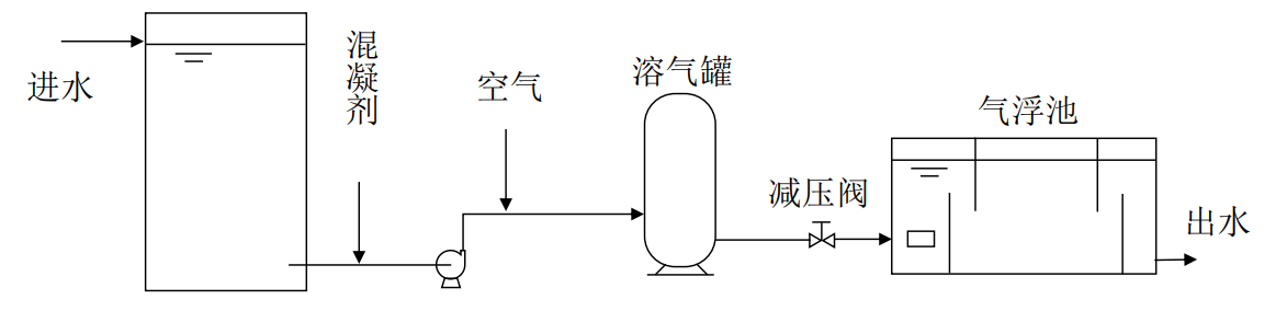 加压溶气气浮的主要设备有加压泵、溶气罐、减压阀、溶气释放器和气浮池。