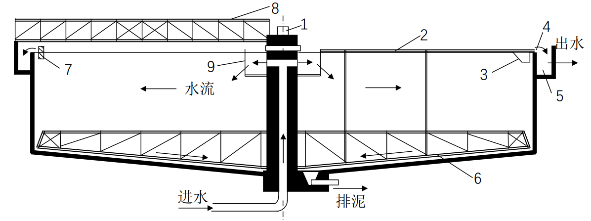 沉淀池是进行泥水分离的一种常见构筑物,根据池内水流方向不同,可以分为平流式、竖流式、辐流式和斜流式四种。