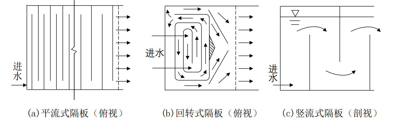 隔板絮凝池根据水流的流动方式又可以分为平流式、回转式和竖流式。