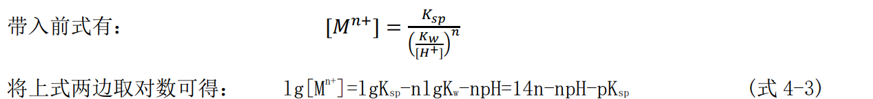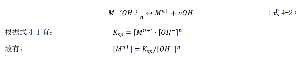 以Mn+表示金属离子,则其氢氧化物的溶解平衡如式4-2所示。