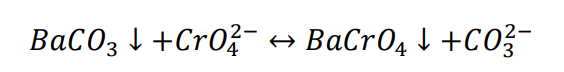 钡盐沉淀法主要应用与含Cr6+污水的处理。采用的沉淀剂有BaCO3、BaCl2、BaS等,生成铬酸钡(BaCrO4),其溶度积Ksp=1.2×10-10。以BaCO3为例,它与废水中铬酸根进行反应如下式所示: