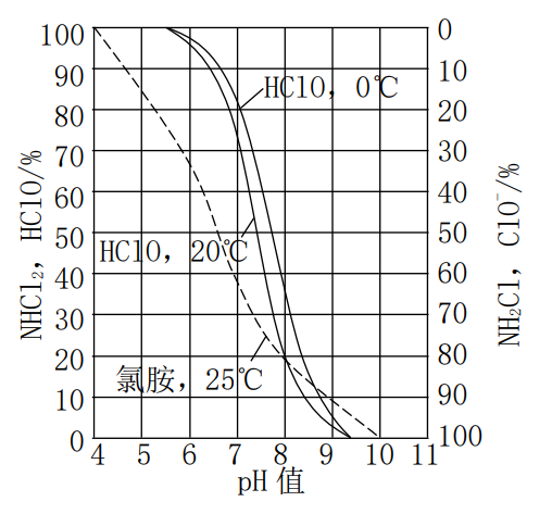 图8-1 HClO、ClO-、氯胺占比与pH关系