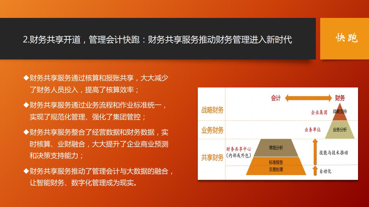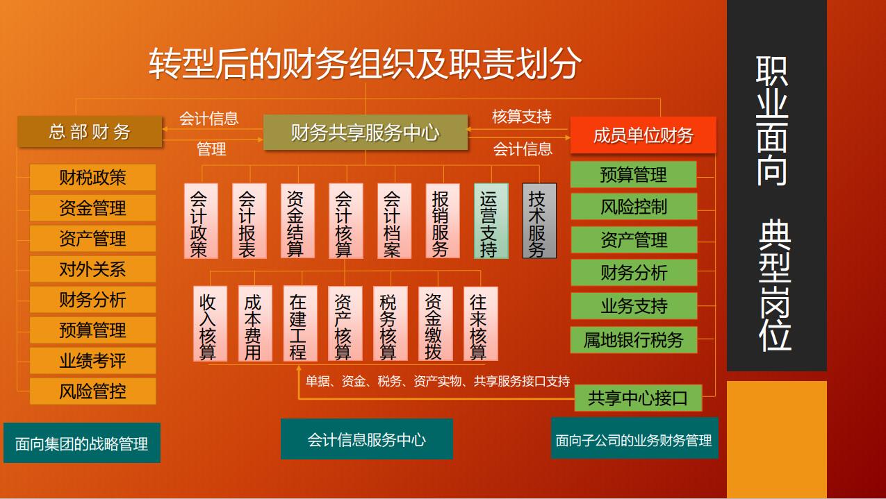 一、涵义:财务共享服务是依托数字信息技术,以财务业务流程处理为基础,将分散于各业务单元重复性高、易于标准化的财务业务,进行流程再造与优化,并集中到财务共享服务中心统处理,以达到优化组织结构、降低运营成本、提升客户满意度、创造财务价值的目的,以市场视角为内外部客户提供专业化服务的分布式管理模式。