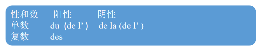 部分冠词是由表示部分意义的介词de 加上定冠词le la les构成的