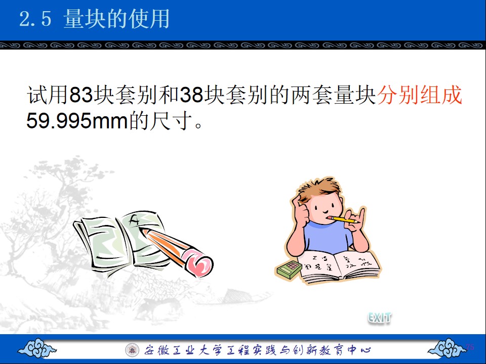 3.4 常用的测量工具及使用 游标卡尺(带表、深度及高度)、外径千分尺、内径千分尺、百分表、千分表内径百分表、的结构、刻线原理及使用方法