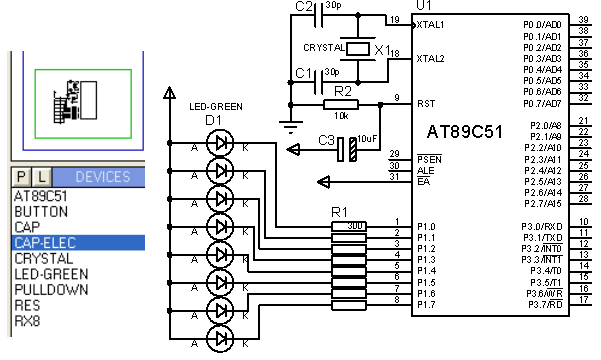 8个发光管,每一刻只有一个亮,亮点由低位向高位循环流动。