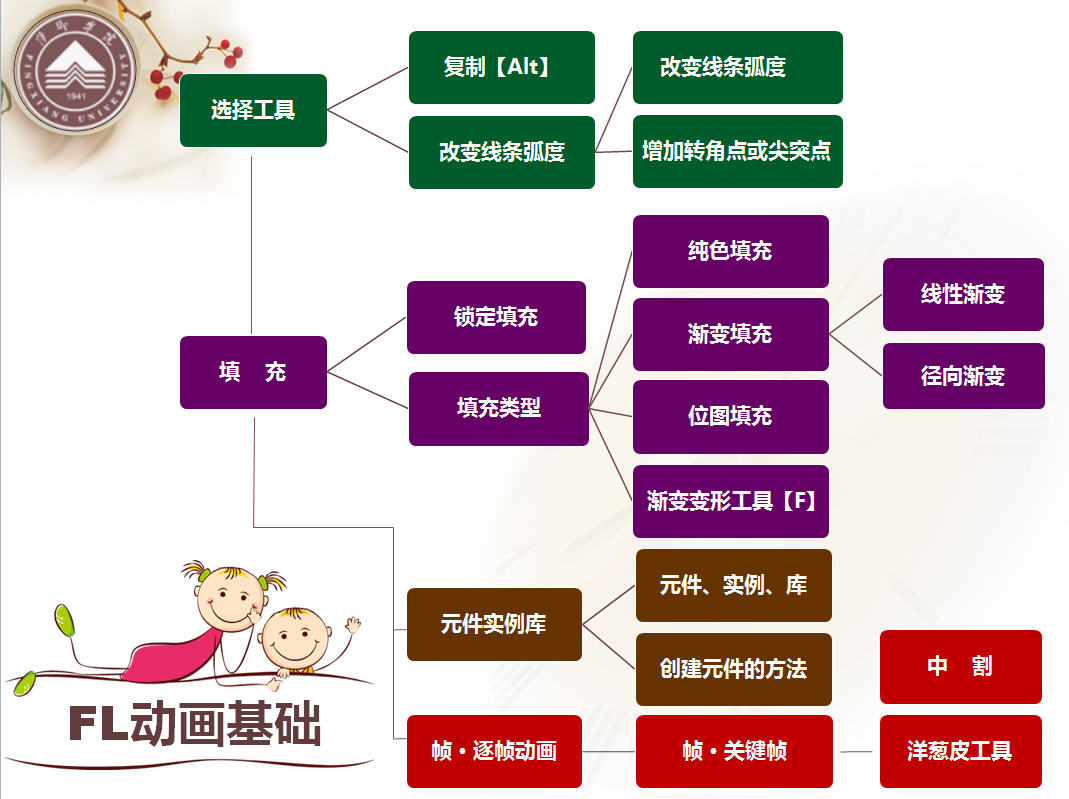 Flash是个用途广泛的二维动画制作软件。本章的课题是:弯弯乐园_绘图基础与逐帧动画技术。我们将分四个部分进行讲解。