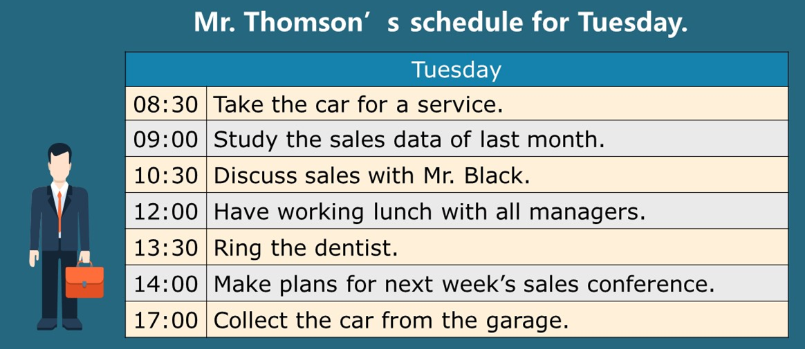 Task Read Mr. Thomson’s schedule for Tuesday. Write your schedule for today.