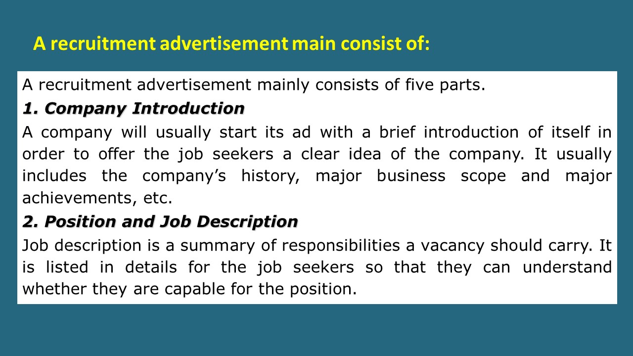Task 1 Read the following job advertisement and match the subtitles A-E with their corresponding parts in the ad.