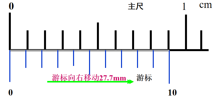 1、以十分度为例,当被测量的物体厚度为27.7mm时,主尺上的哪一根刻度线与游标上刻度线相重合呢?