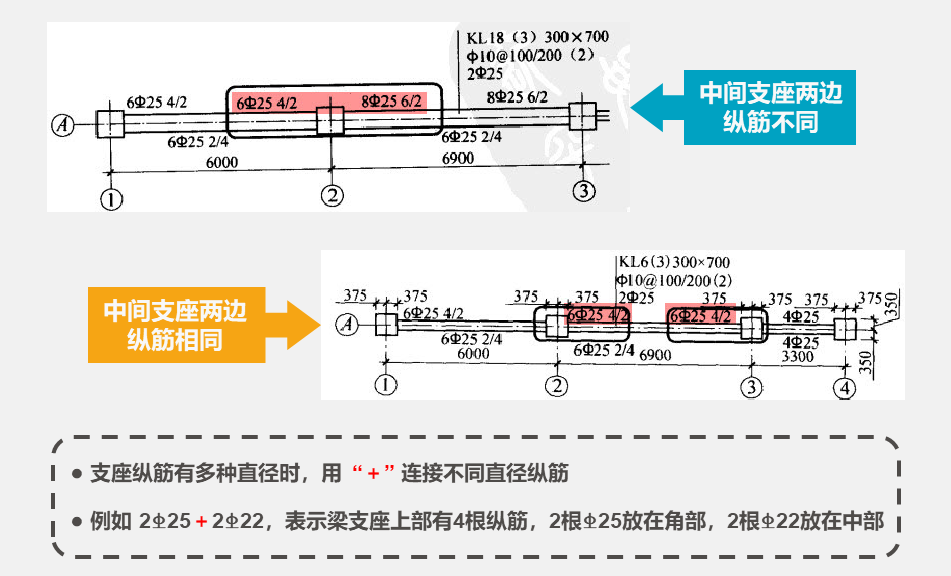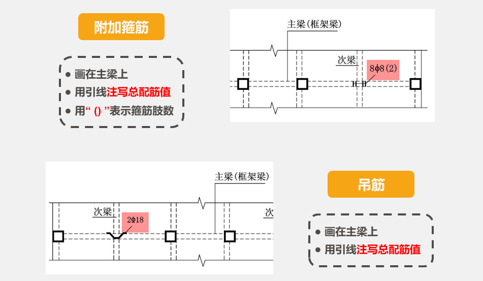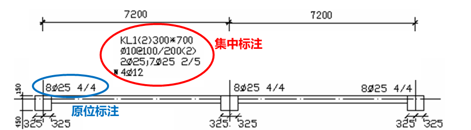 平面注写包括集中标注与原位标注,集中标注表达梁的通用数值,原位标注表达梁的特殊数值。