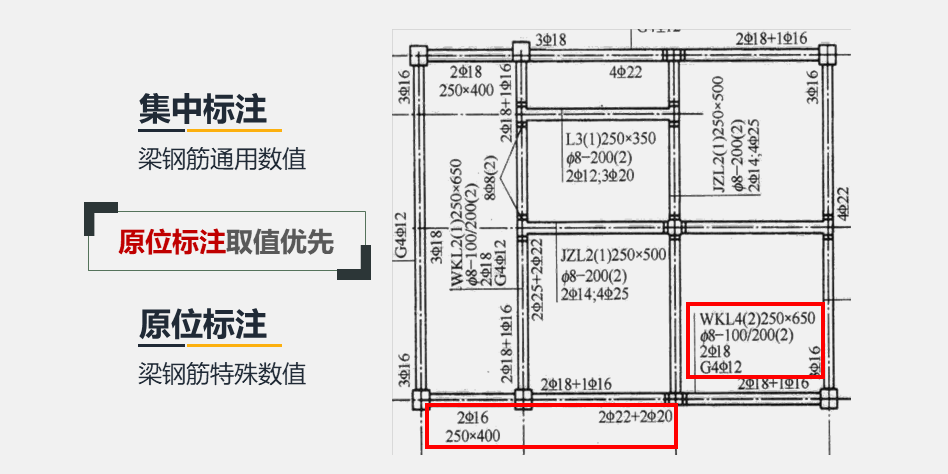 ☞ 施工时,原位标注取值优先。