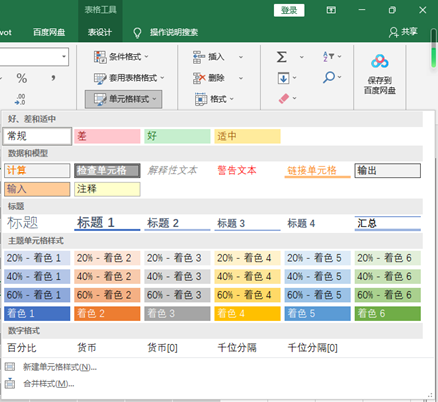 样式”按钮,弹出单元格样式库,如图4-30所示,从中选择所需样式即可。