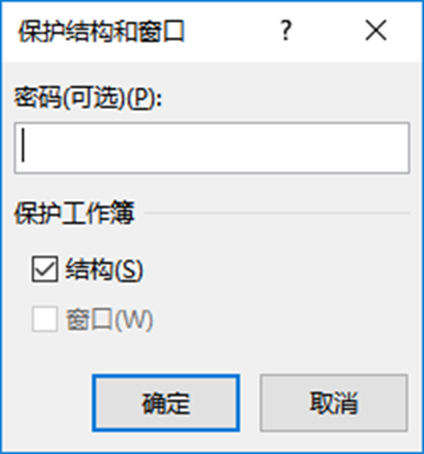 图4-7 “保护工作表”对话框 图4-8 “保护结构和窗口”对话框