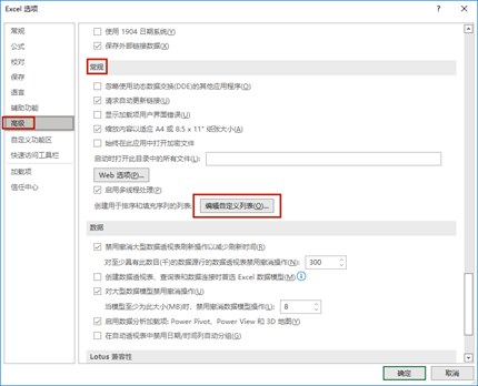 操作方法:选择“文件”按钮“选项”命令,在弹出的“Excel选项”对话框左窗格中选择“高级”,在右窗格中的“常规”下单击“编辑自定义列表”按钮,如图4-13所示。在弹出的“自定义序列”对话框中输入“赵钱孙李”如图4-14所示,单击“添加”按钮,新定义的填充序列出现在“自定义序列”列表框中,单击“确定”按钮。返回Excel窗口,输入“赵”把鼠标移到左下角出现填充柄往下拖到即可填充“赵钱孙李”。