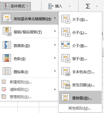 图4-32 “重复值”菜单命令 图4-33 “重复值”对话框