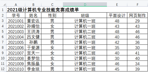 计算机专业技能竞赛结束后,需要创建成绩表,将数据采集后录入电脑,并对表格进行美化。