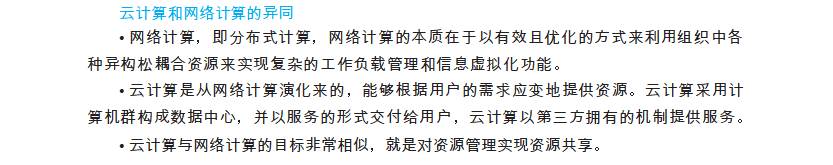 B。云计算是从网络计算演化来的,两者目标相似,都是资源共享。