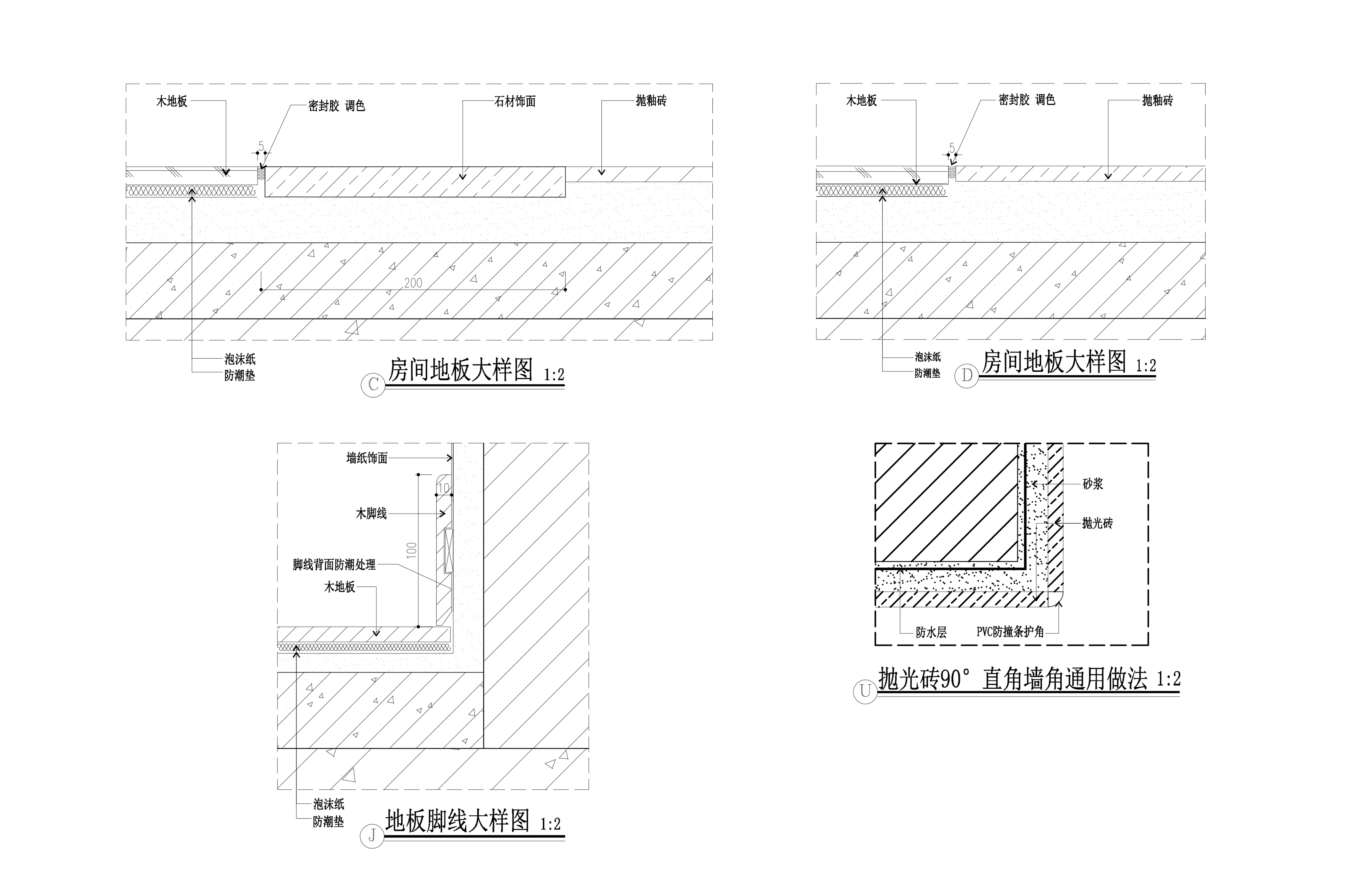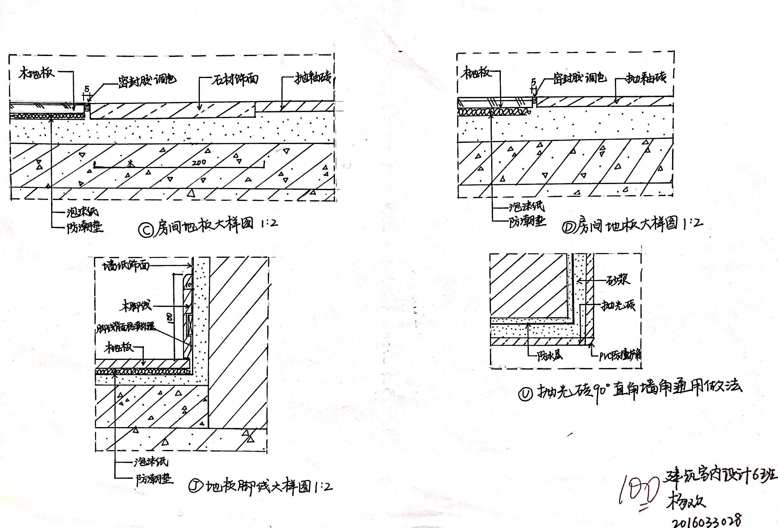 学习任务:掌握室内地面施工工艺,临摹节点详图。