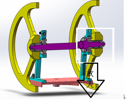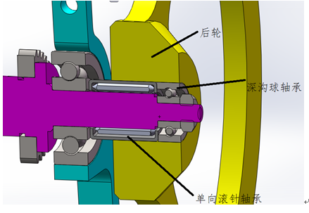 即两后轮都分别按有单向轴承,当小车做圆弧转动行使时,外侧轮的速度高于内侧轮的速度,内侧轮为驱动轮,驱动轴的动力作用在内侧轮上,外侧轮则相对差动。最外侧安装在后轮的单向轴承是为了防止后轮轴向窜动,影响小车运动轨迹,避免给小车带来不必要的误差。双轮驱动的优点是动力均匀,行使速度平稳。大大降低小车停车和侧翻的可能性。