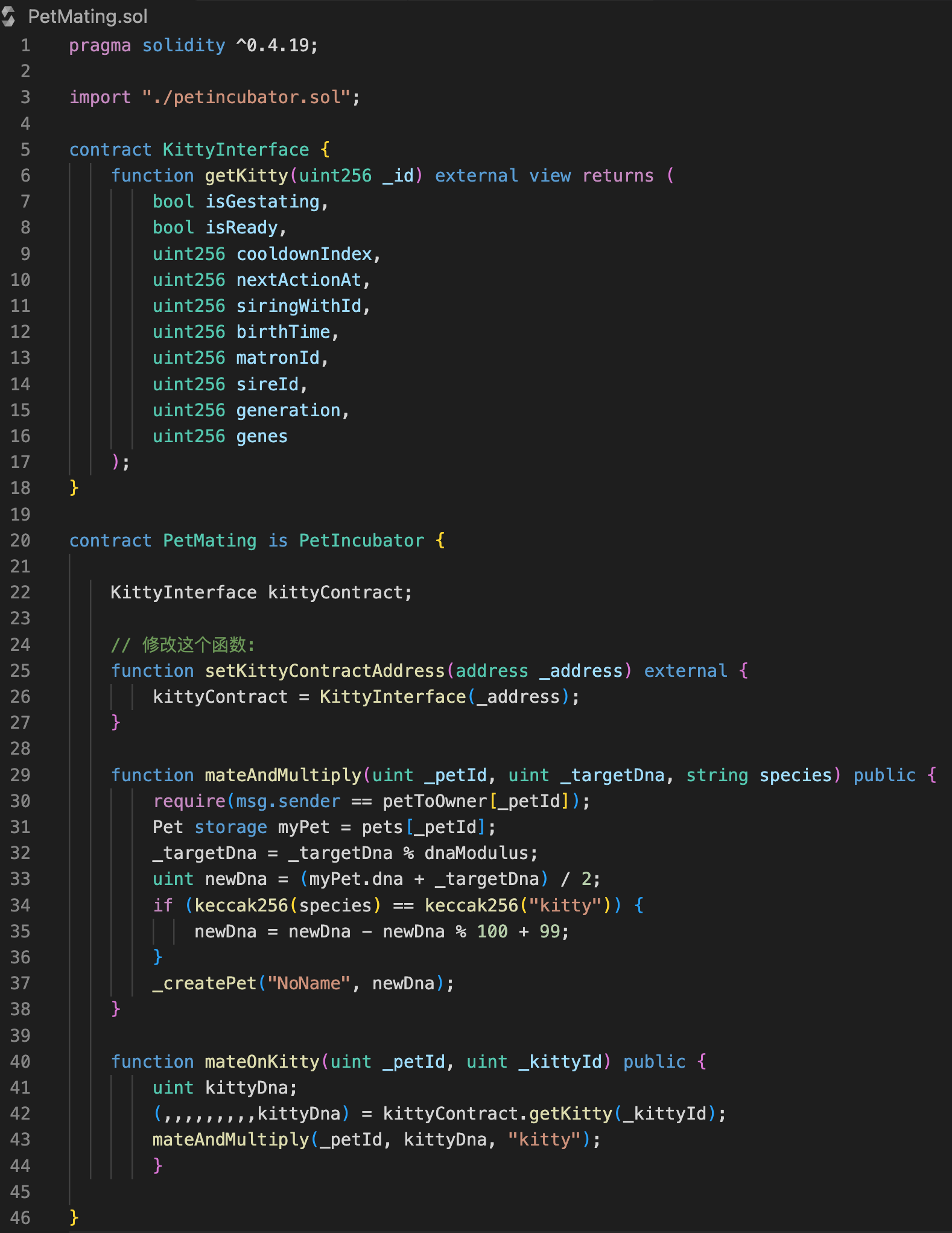 PetMating is PetIncubator PetIncubator is Ownable 复制代码