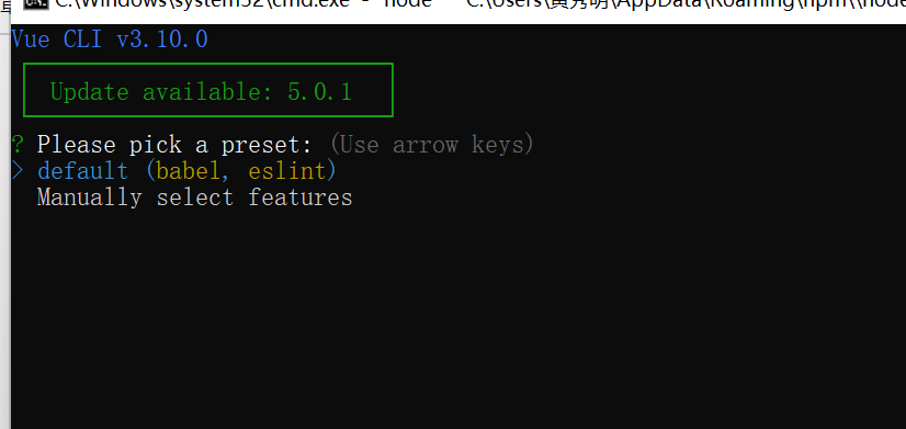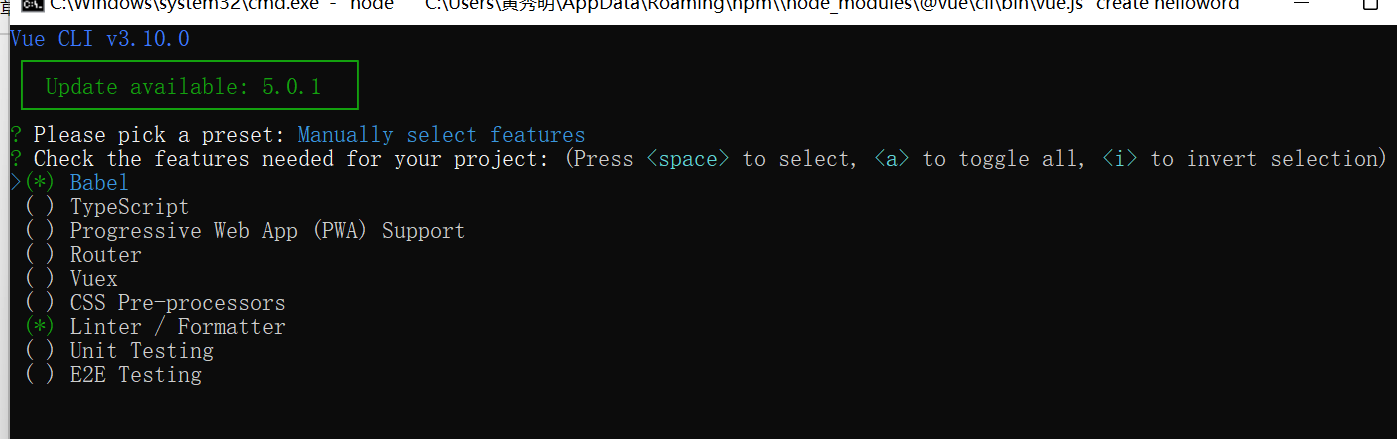 执行 vue create 命令之后,可看到如下所示界面