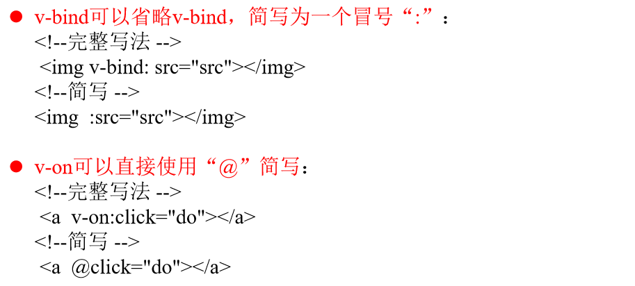Vue.js为v-bind和v-on这两个最常用的指令提供了语法糖(语法糖是指在不影响功能的情况下,添加某种方法实现同样的效果,以便于程序开发,也称为糖衣语法,通常来说使用语法糖能够增加程序的可读性,从而减少程序代码出错的机会),也可以说是缩写或简写。