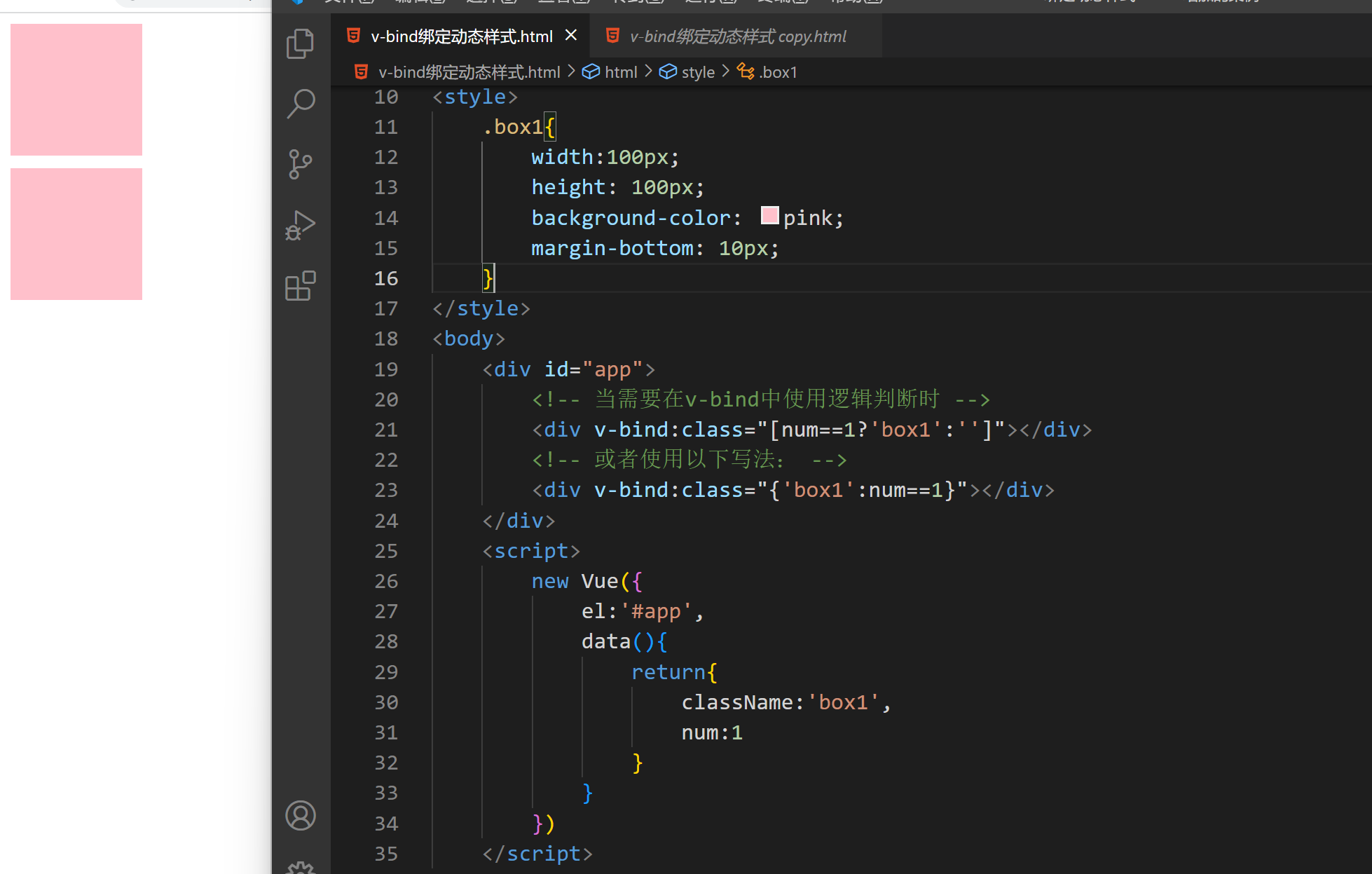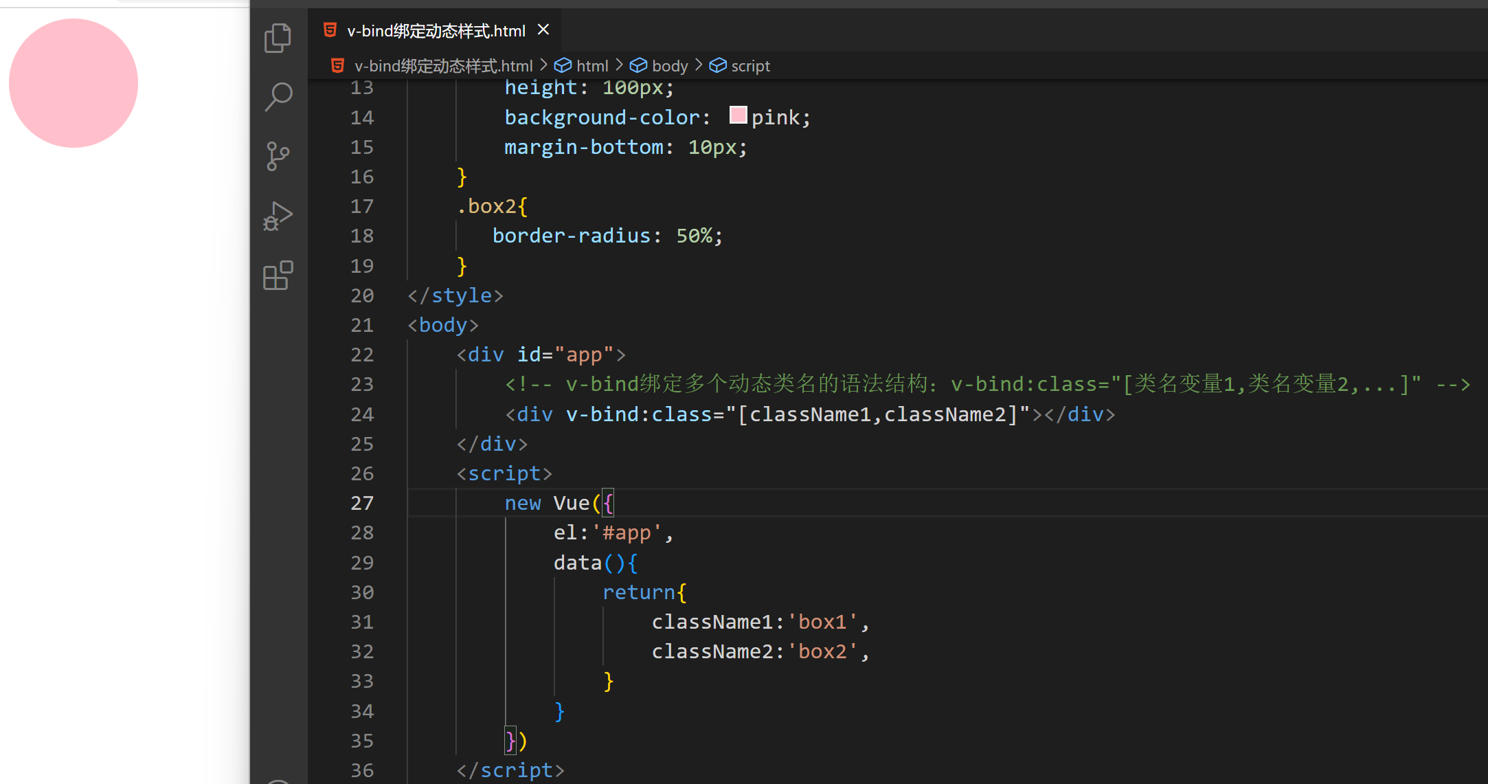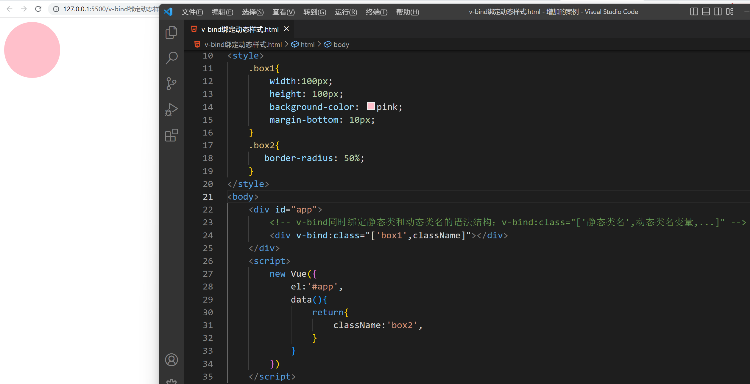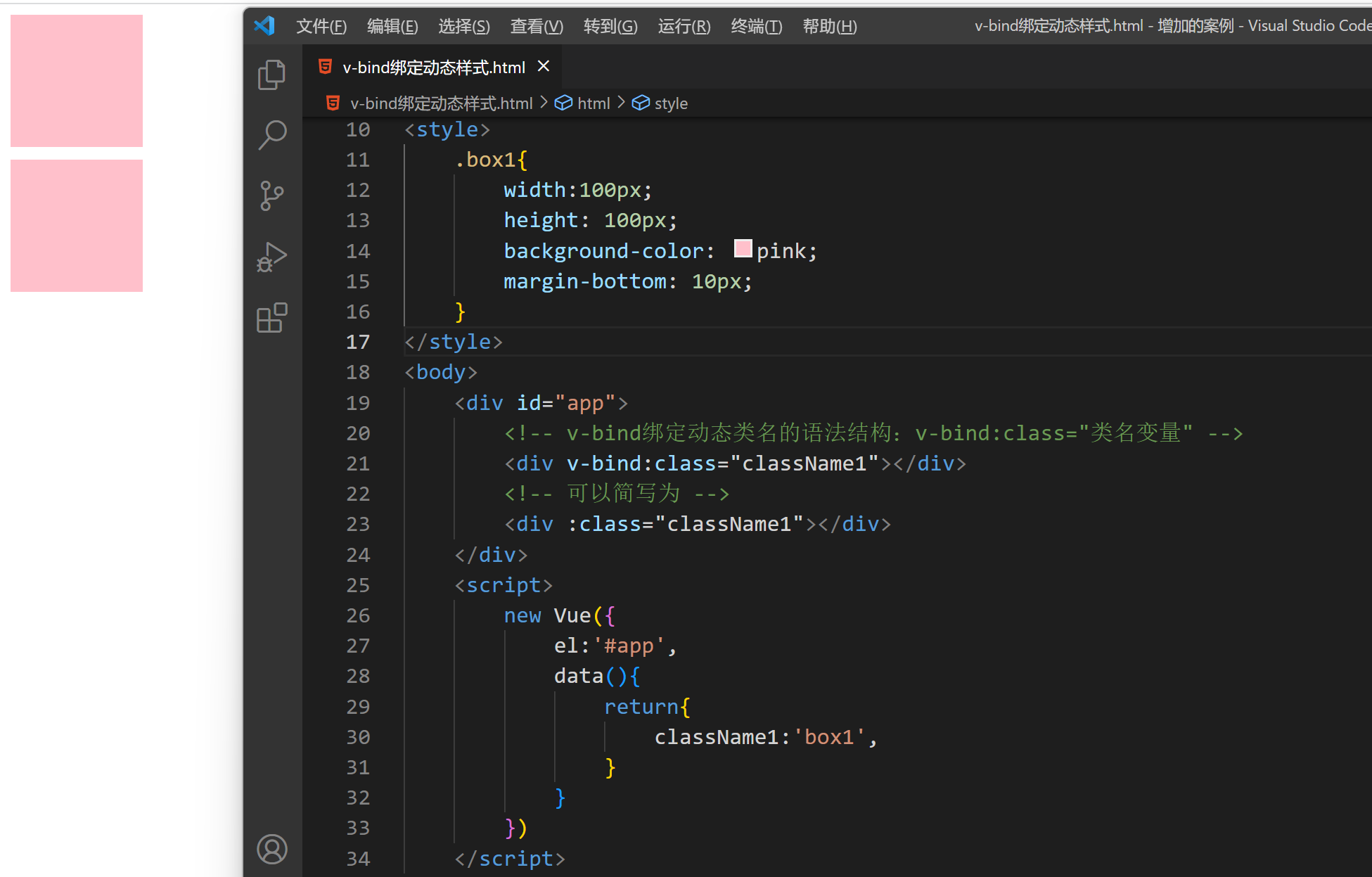 ps:v-bind有时候也经常用于绑定动态样式,具体的语法如下: