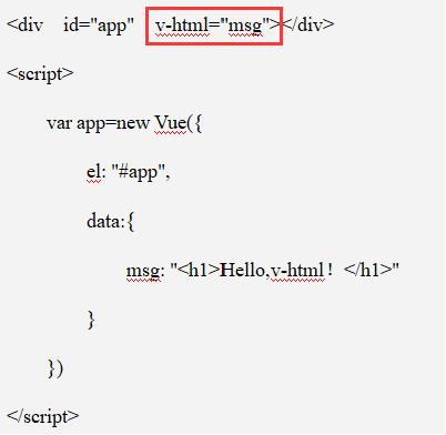 v-html用来在DOM元素内部插入HTML代码内容。某些情况下,从服务器请求到的数据本身就是一个HTML代码,如果直接通过“{{}}”来输出,会将HTML代码也一起输出。v-html指令更新节点元素的 innerHTML ,内容按照HTML格式进行解析,并且显示对应的内容。