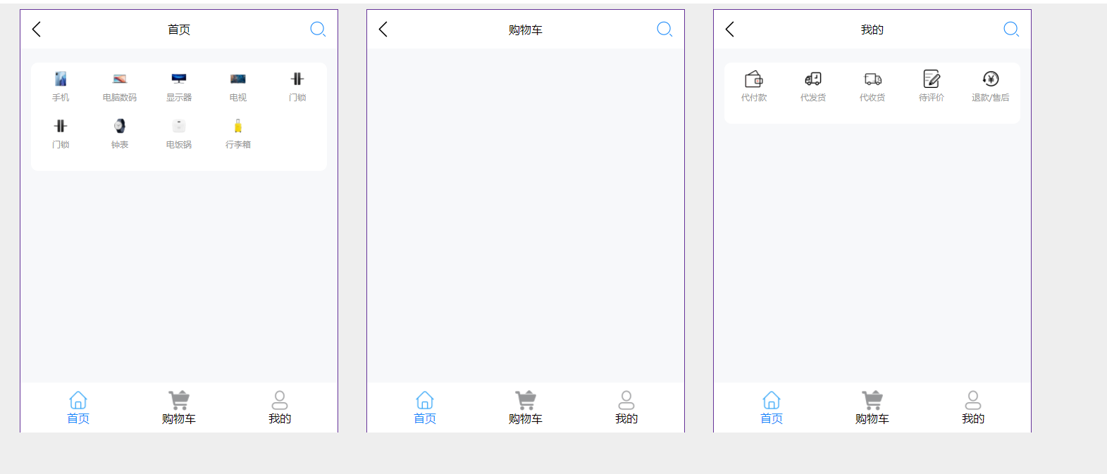 2、定义一个底部组件,名为 tabBar,分别在page1、page2、page3、进行调用。
