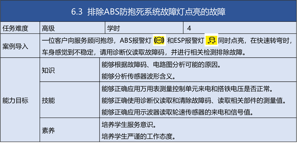 任务三:排除ABS防抱死系统故障灯点亮的故障(III 6-6)