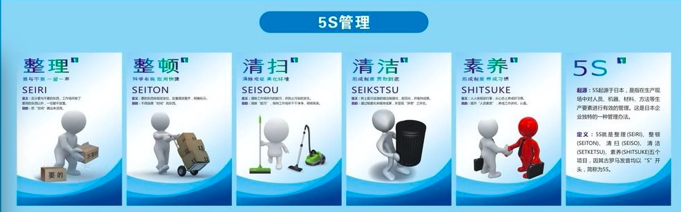 p 5S是指整理(SEIRI)、整顿(SEITON)、清扫(SEISO)、清洁(SEIKETSU)、素养(SHITSUKE)等五个项目,因日语的罗马拼音均为“S”开头,所以简称为5S(见图1)。