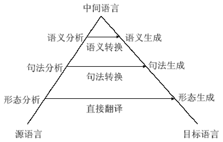 Machine translation is essentially a simulation of human thinking and language activities. Its paradigm can be seen in the followlling diagram.