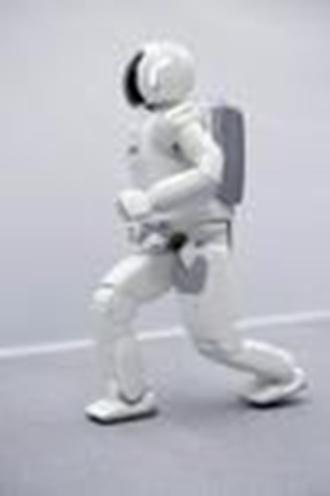 到了2000年,日本本田公司又开发的ASIMO仿人机器人(身高120cm,重43kg),可遥控、双足、能运动。右图给出的就是这新型的仿人机器人。仿人机器人的自由行走,甚至跑步,是一个难题,在这方面有所突破是有重要意义的。