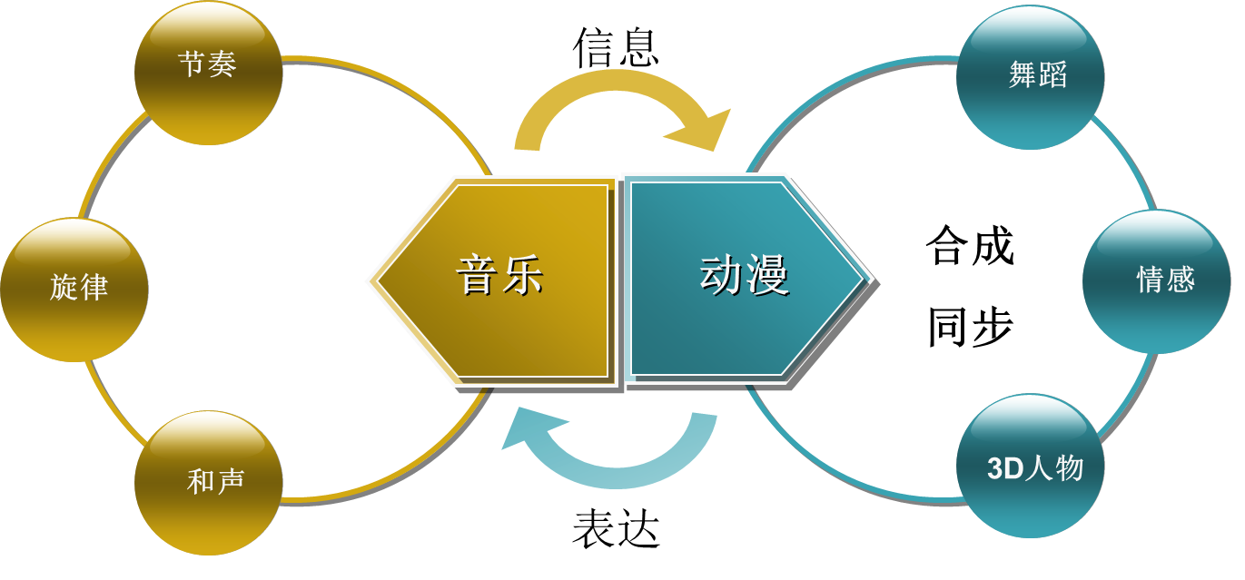 机器歌舞主要是基于情感模式分析开展有关舞蹈创作计算模型及其机器表演实现、汉语歌曲自动朗诵、哼唱、歌唱等不同形式演唱的计算模型及其机器表演实现,以及歌舞综合机器表演系统方面的研究。具体实现方案分为两个阶段,首先主要研究以动漫人物的虚拟舞蹈动画来表现音乐形象,是音乐的一种可视化的实现形式与解决;然后实现以音乐为驱动并结合音乐自身所包含的情感特性,通过动漫人物的面部表情、舞蹈动作等表现形式,演绎音乐的内涵。 将虚拟的动漫歌舞表现嵌入到机器人系统中,与智能控制技术相结合,完成真实的机器歌舞表演。为此,需要完成音乐解析模块、音乐情感检测和标注模块、舞蹈动作关联分析模块、音乐舞蹈匹配模块、动漫人物展示模块以及歌舞动作控制模块。