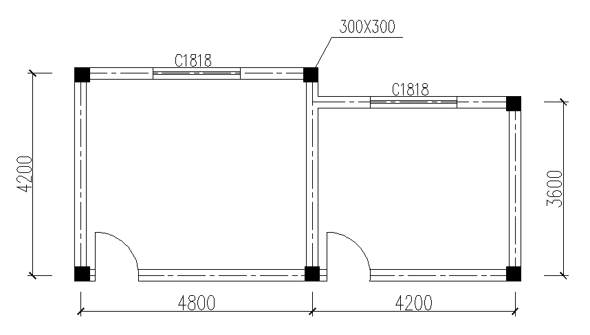 S净=(4.5-0.24)×(4.8-0.24)+(4.8-0.24)×(4.2-0.24)=37.48(㎡)