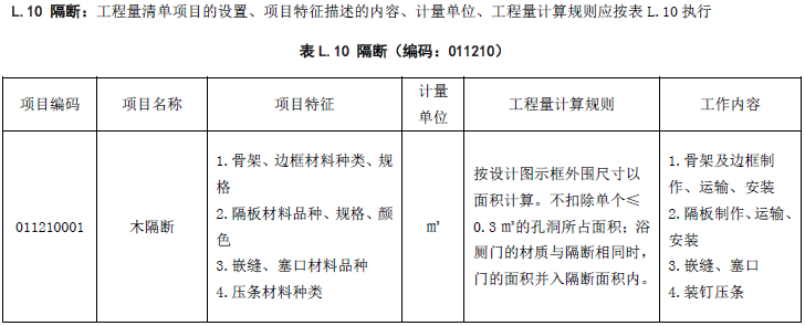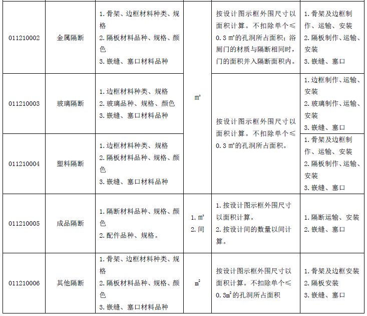 7.隔断按设计图示框外围尺寸以面积计算,扣除门窗洞及单个面积>0.3m²的孔洞所占面积。