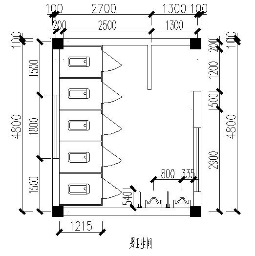 计算图示卫生间隔断工程量,隔断高1800mm,墙厚均为200mm,轴线均居中。