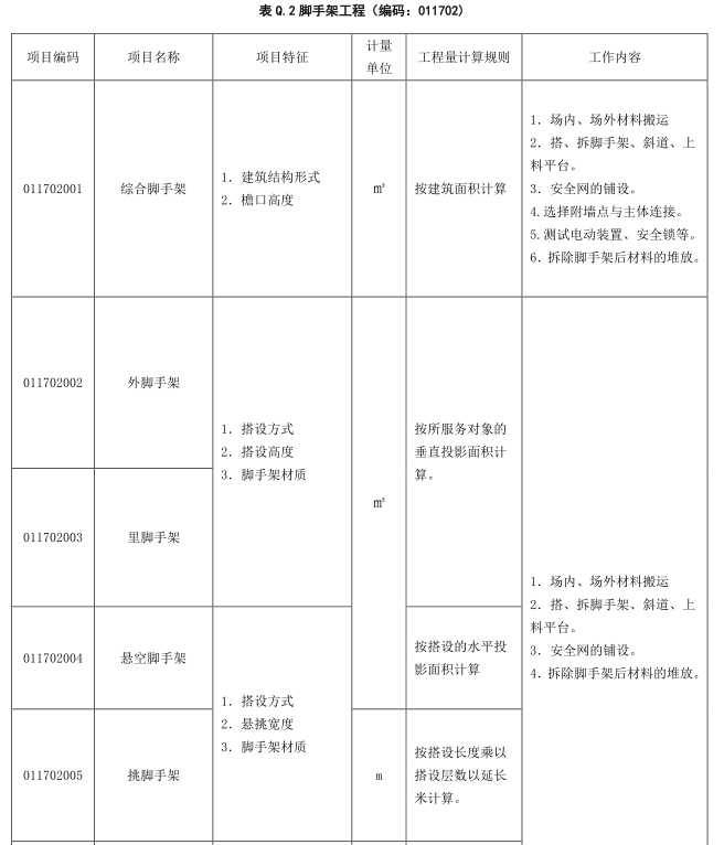 (7)挑脚于架按搭设长度乘以层数以长度计算。