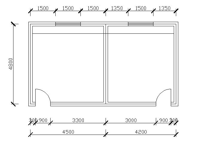 计算图示建筑内墙粉饰脚手架工程量,墙厚240mm,层高3000mm,板厚100mm。