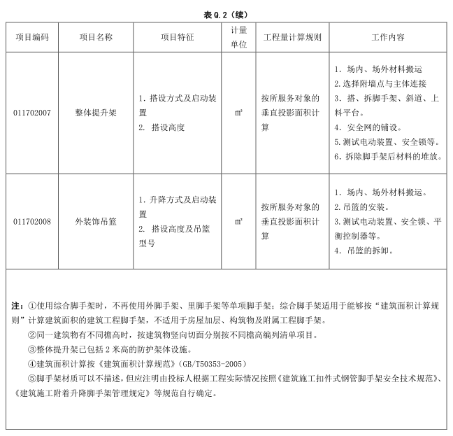(1)外脚于架、整体提升架按外墙外边线长度(含墙垛及附墙井道)乘以外墙高度以面积计算。