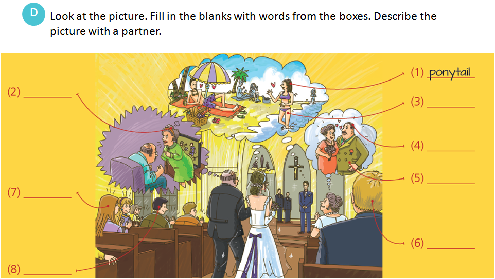 E.g.The man’s bald head was filled with sweat. 这位男子的秃头上满是汗。
