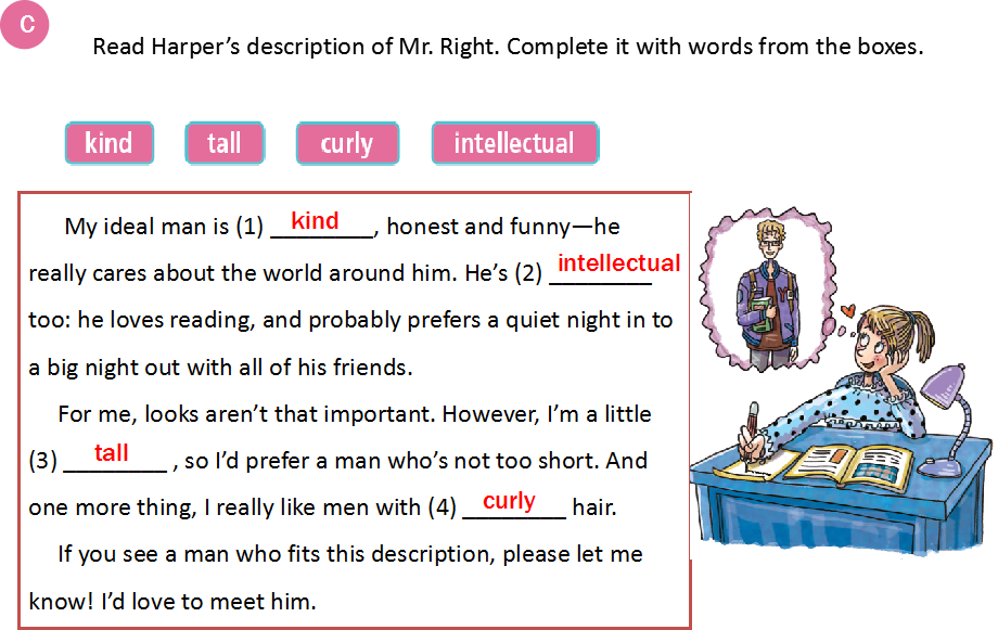 Read Harper’sdescription of Mr. Right. Complete it with words from the boxes.