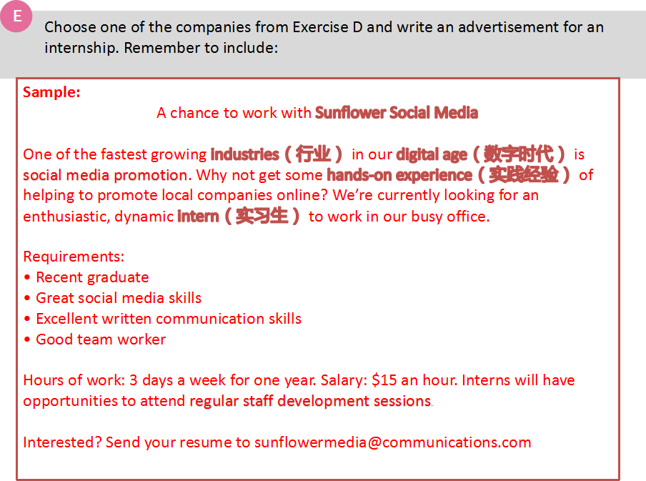 gain work experience赚取工作经验
