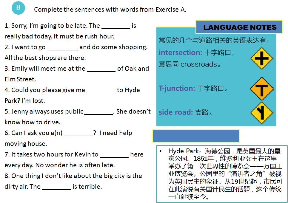 E.g. Traffic lights have been placed at all major intersections. 所有主要的交叉路口都安装了交通信号灯。