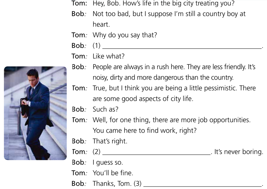 A. I just can’t get used to some aspects of city life. 我就是不习惯城市生活的某些方面。