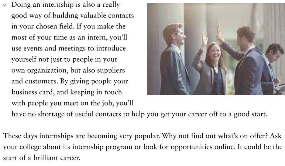从事实习工作也是在业务领域内积累宝贵人脉的好方法。如果你充分利用实习这段时间,借助公司各种活动和会议,你将不仅向公司内部的人介绍自己,还会让供应商和顾客认识你。向别人递送名片,并与工作中接触到的人保持联系,你便不会缺乏有用的人脉,这将有助于为你的事业迎来一个良好的开端。